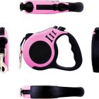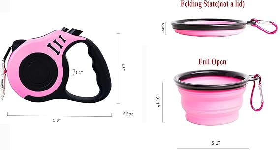 Retractable Leash — Leash Size:5.9″*4.3″*1.1″ , Length: 5M/16FT. Suitable for small medium dogs. This 5M/16FT leash is recommended for PETS WEIGHT up to 33 lb. PUPPY is recommended other size leash of 3m/10ft from our store. Package Includes: 1*Leash, 1*Bowl, 1* Dispenser, 2*rolls of waste bags, 1* buckle.