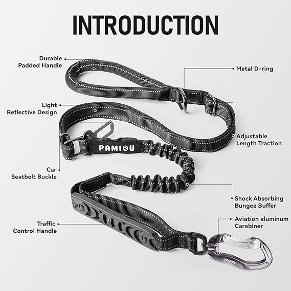 Strong Bungee and Shock Absorbing: Shock absorbing extendable bungee design, with durable and wear-resistant nylon materials, our dog leash is enough to withstand the pulling force of Large pooches up to 180lb. Suitable for Medium to Large Dogs.